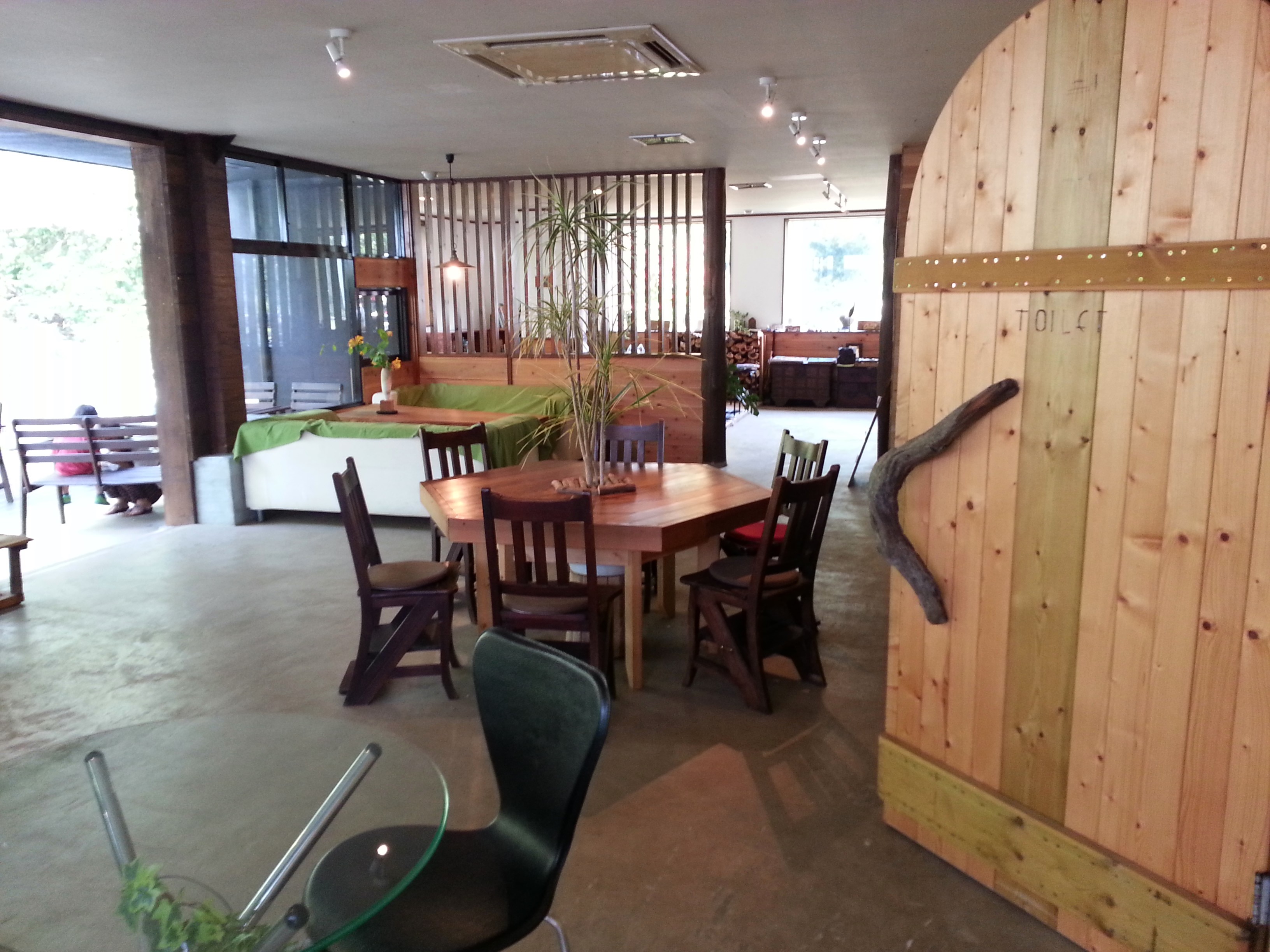 広々したcaféでまったりしながら森を眺められます。