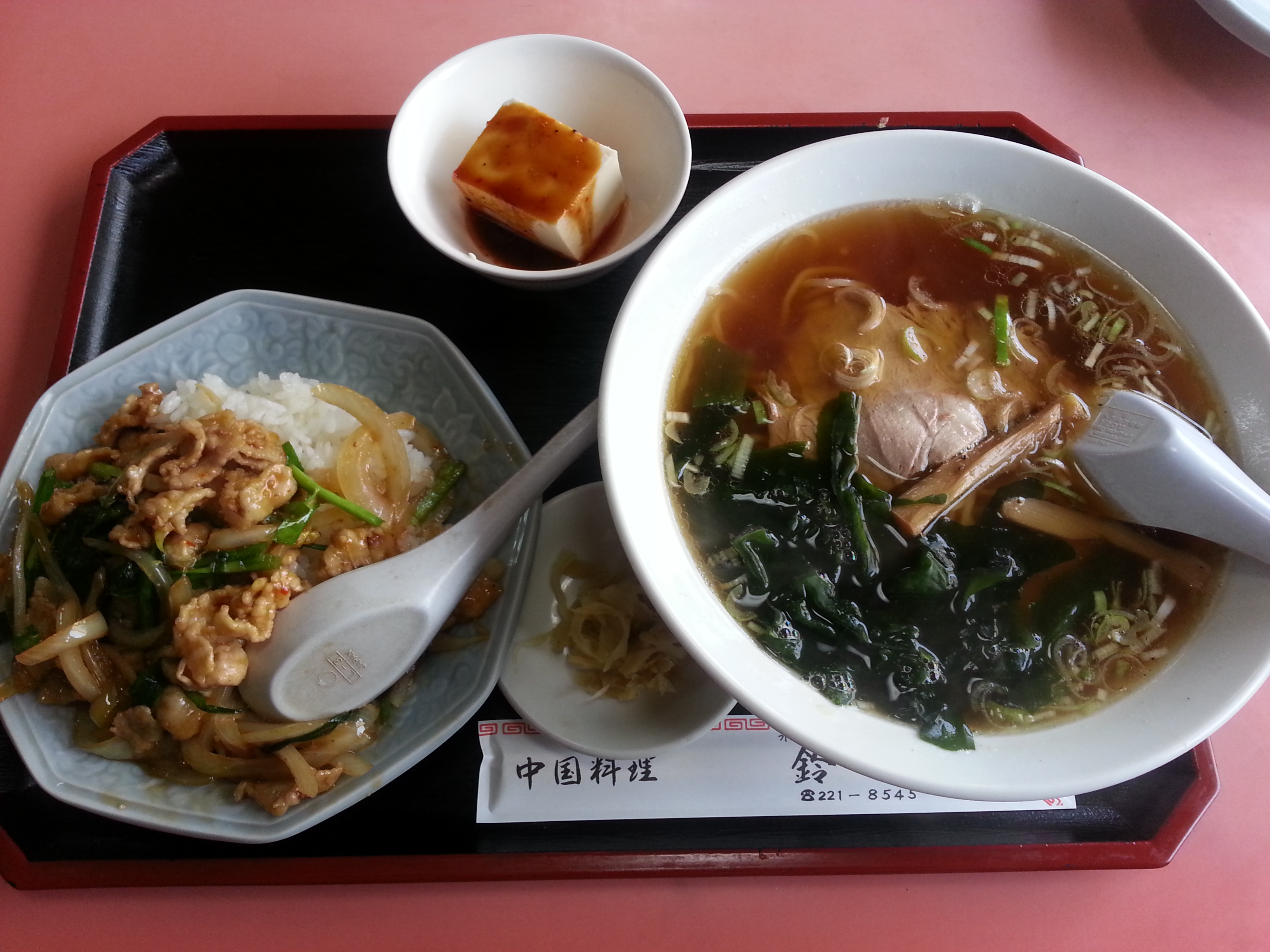 多すぎず少なすぎず、さっぱりした醤油ラーメンに適量の極旨豚バラ丼がセットメニューです!!