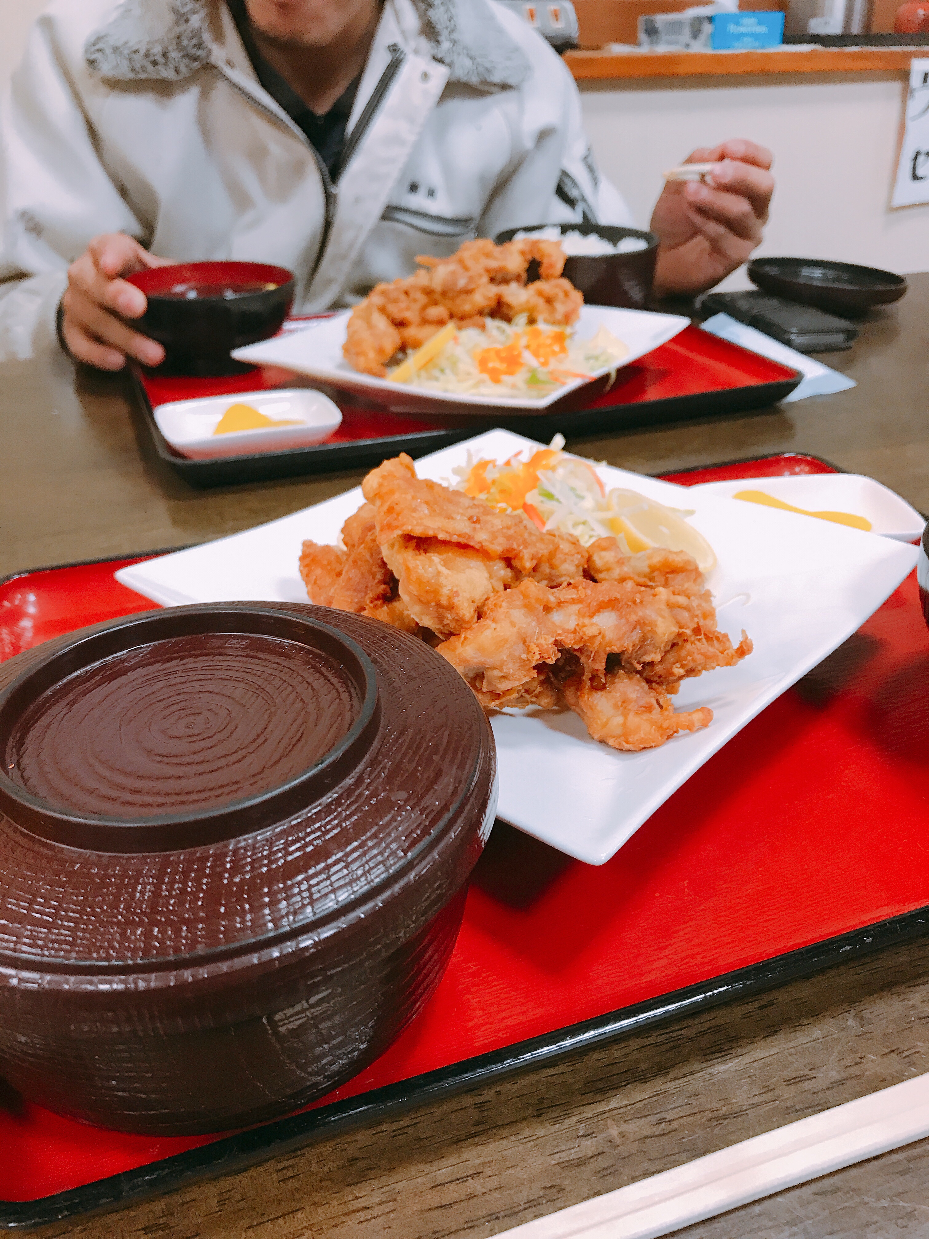 2人で、唐揚げ定食を注文する。